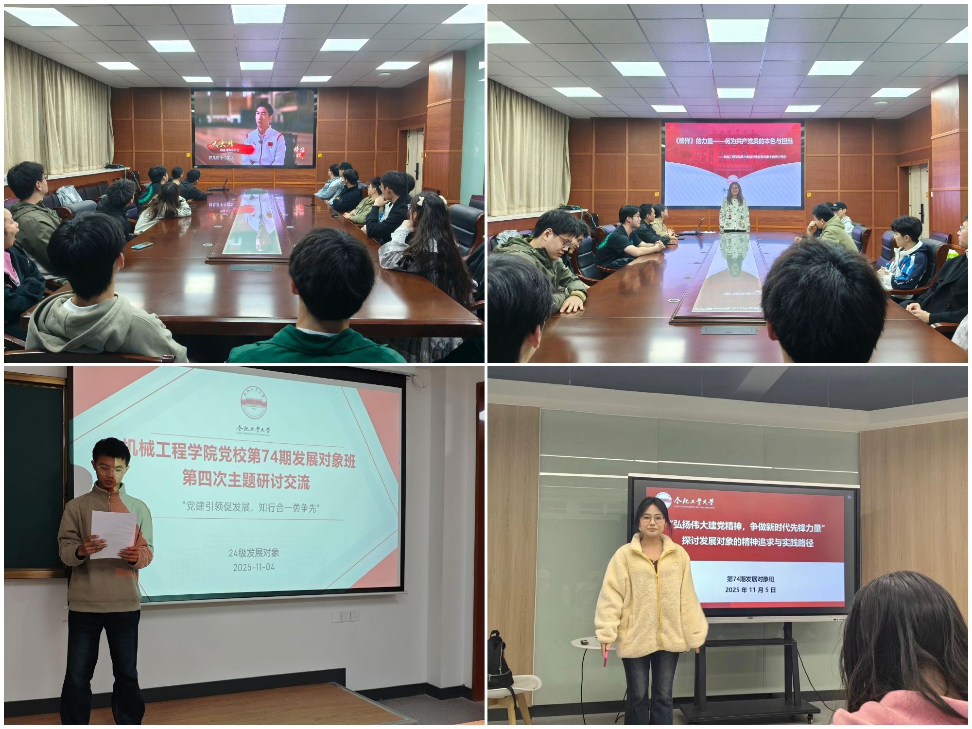 本科生2024级学员以“党建引领促发展,知行合一勇争先”为主题开展研讨,学员们聚焦“如何在校园建设与社会服务中发挥先锋模范作用”,结合个人实际提出在志愿服务、专业实践等方面展现先锋担当。本科生2022级和2023级学员围绕“弘扬伟大建党精神,争做新时代先锋力量”主题展开研讨,学员们结合自身学习科研,畅谈对伟大建党精神的理解,明晰了在日常生活中践行先锋力量的行动方向。研究生学员以“《榜样》的力量——何为共产党员的本色与担当”为主题开展研讨交流,观看了张桂梅扎根边疆教育、武大靖冰场为国争光的先进事迹视频,学员们从“奉献坚守”“拼搏担当”等角度分享感悟,明确要以榜样为镜,将精神力量转化为科研与人生道路上的实际行动。