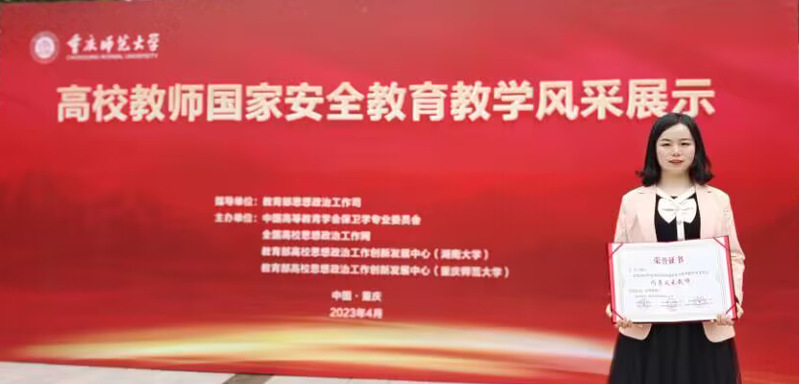 4月6日至8日,由教育部思想政治工作司指导,中国高等教育学会保卫学专业委员会、全国高校思想政治工作网、教育部高校思想政治工作创新发展中心联合主办的“高校教师国家安全教育教学风采展示活动”在重庆师范大学举行。我校参赛代表、平博线上平台辅导员丁玲表现优异,荣获全国“闪亮风采教师奖”。