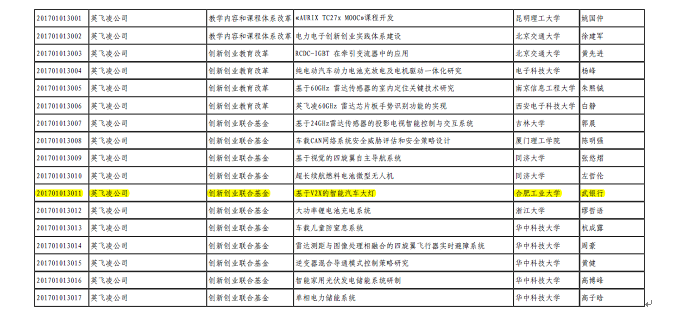 为贯彻落实《国务院办公厅关于深化高等学校创新创业教育改革的实施意见》文件精神,教育部组织有关企业支持高校共同开展产学合作协同育人项目。此项目的资助企业英飞凌公司系全球顶级的汽车电子芯片及部件的研发和制造企业,其借助教育部创新创业平台,与中国多所高校开展了汽车电子与控制领域产学项目合作。项目创新了产学合作协同育人机制,进一步加强了学生创新精神和工程实践能力的培养,提高了人才培养质量。